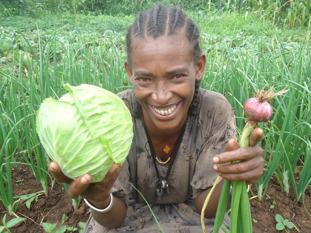 Over the past few years, Geletie had the opportunity to participate in training for growing vegetables. She planted Cassava, pepper, cabbage, tomato, onion and carrot. In the first production year, all the vegetables that she produced were consumed in the family. In the second production season, she produced enough to sell and earned 2000 birr (about US$42).